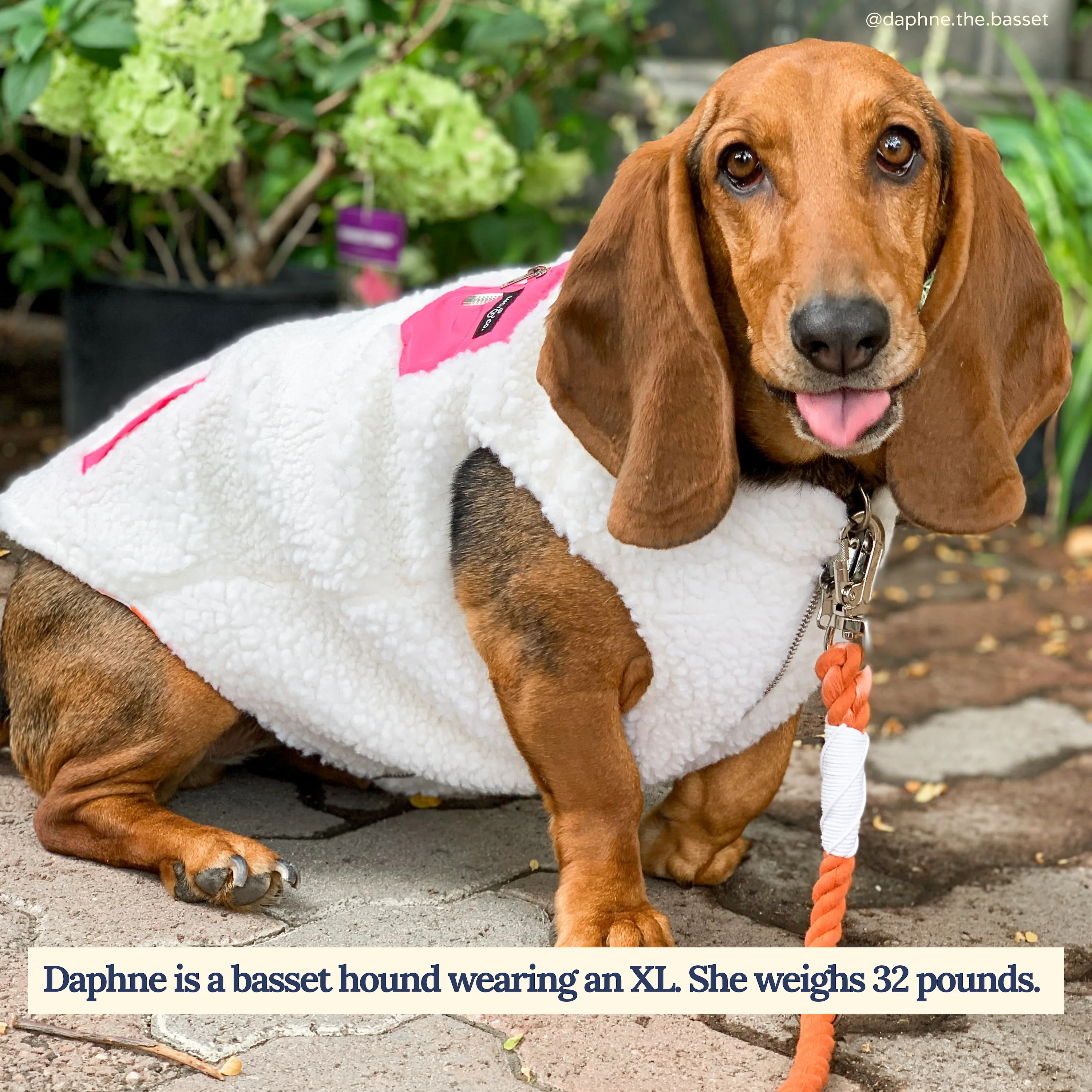 Sugar and spice and everything nice! This warm and fuzzy Sugar & Pumpkin Spice dog jacket is sweeping winter wardrobes and blanketing its wearers in a big bear hug! We had the on-the-go dog in mind when we designed these: zip closures and a leash clasp opening on the back side of the vest make getting out the door easy.