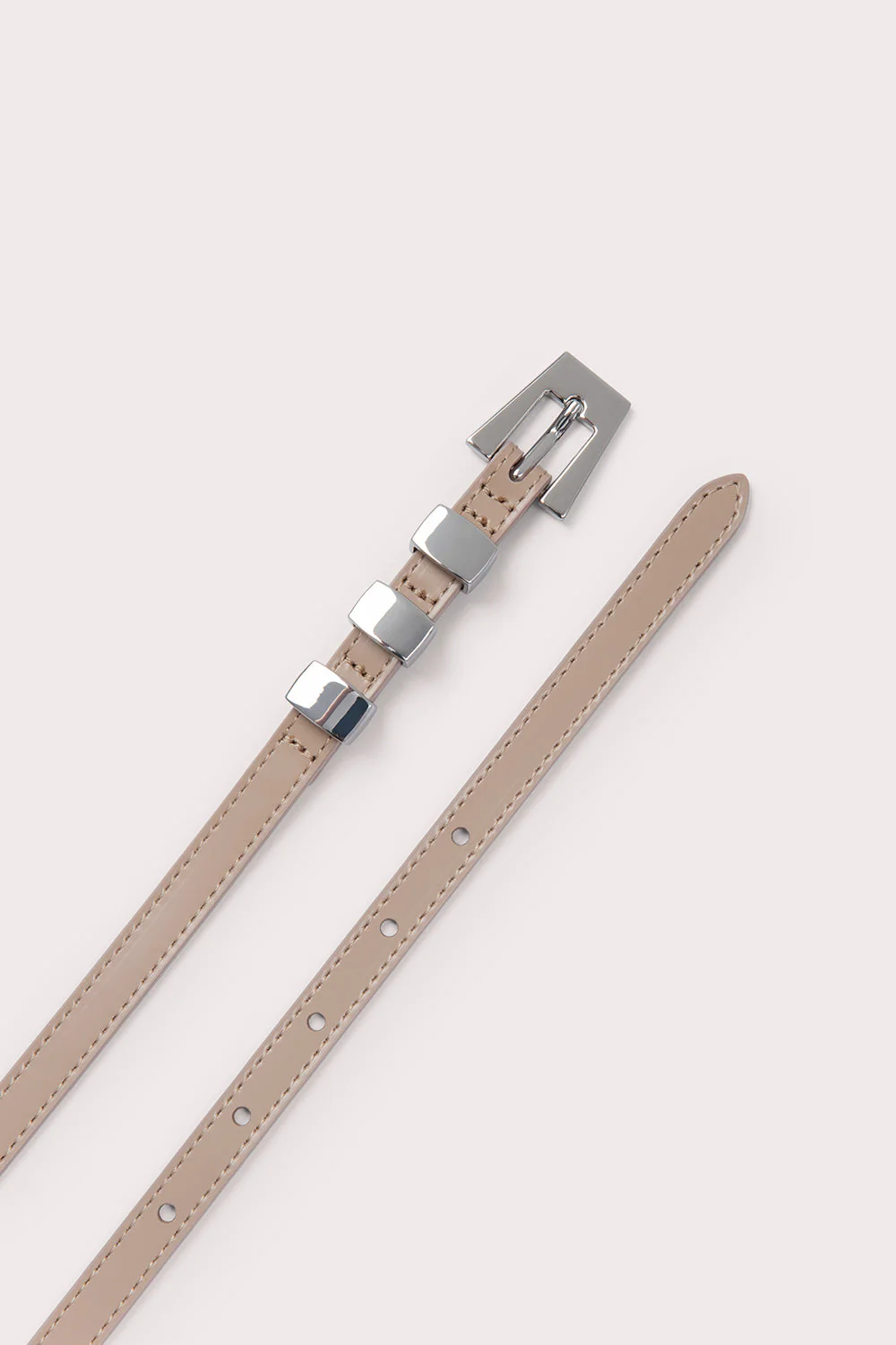 Semi patent leather, a material that is distinctive in BY FAR collections, gives this thin belt a polished timeless look. Its sleek design is completed with a gold-plated buckle and chunky rectangular loops.